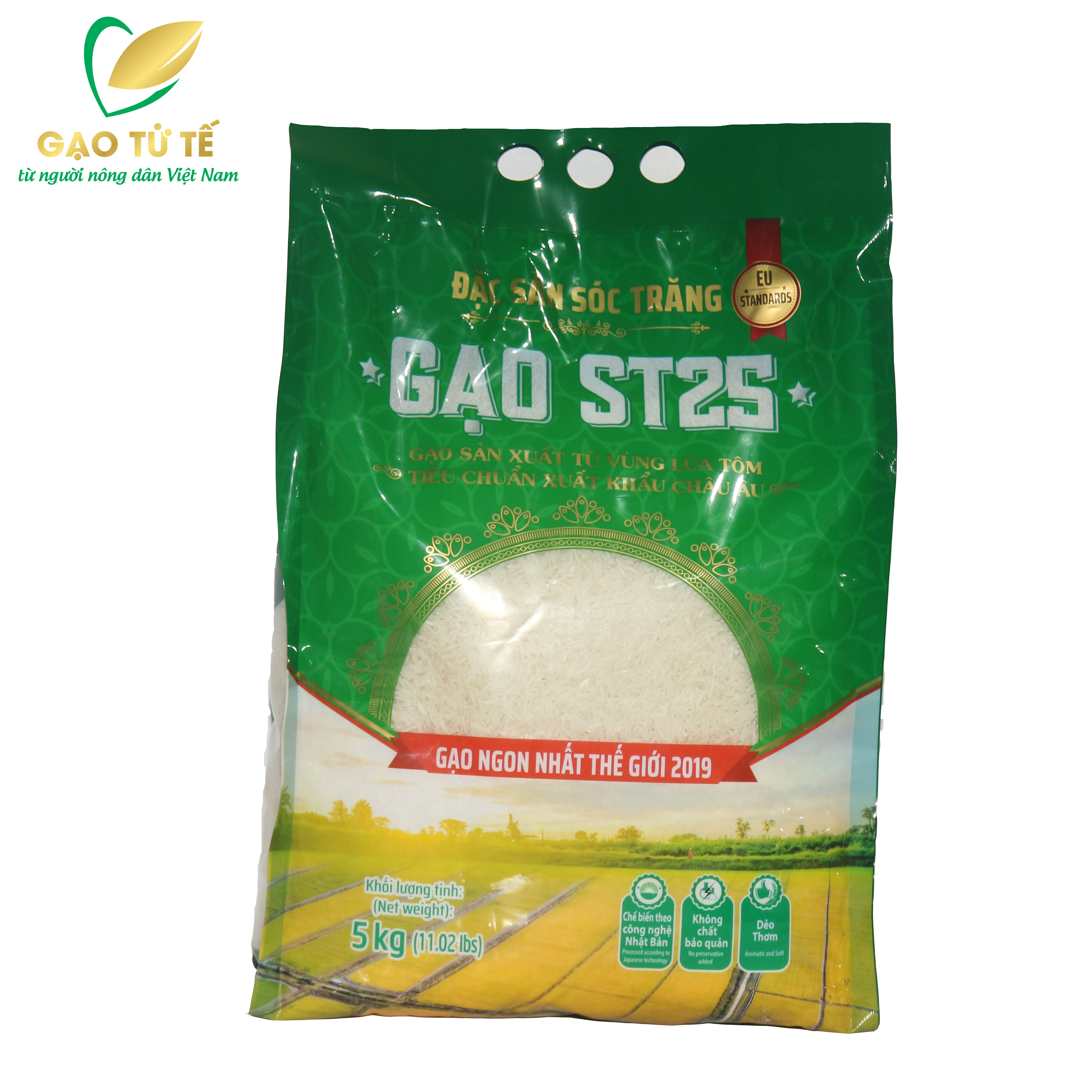Gạo ST25 là sản phẩm đạt giải “Gạo ngon nhất thế giới 2019” của công ty CP Tập đoàn Giống cây trồng Việt Nam (VINASEED), được gieo trồng tại vùng lúa tôm Sóc Trăng. Sử dụng, giống lúa thuần chủng do Ks. Hồ Quang Cua cung cấp, quy trình canh tác khép kín đảm bảo truy xuất nguồn gốc rõ ràng bằng phần mềm tiên tiến Farm-Record của Nhật Bản.